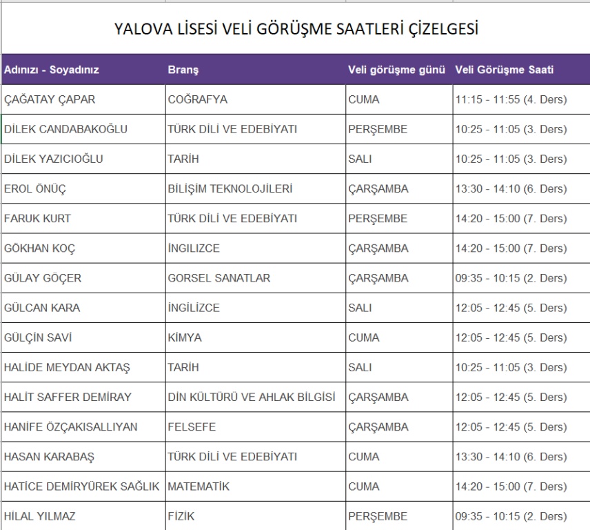 Veli Görüşme Saatleri